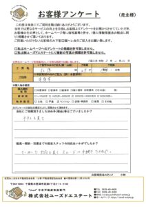無事お引渡しが終了できましたがご実家等のご相談もあるとのことですので、今後ともどうぞよろしくお願いいたします。